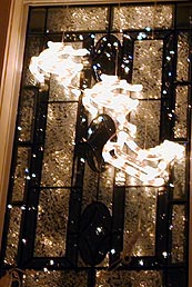 ステンド。外のライトが虹色に見えて、ちりばめた星のよう・・・