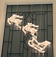 ステンドグラスは吸着版は付かないので、ツッパリ棒に糸を付けて垂らしました。