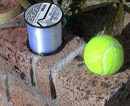 上の写真は何のへんてつもない釣り糸とテニスボール。