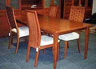 何点か見せてもらい、決めかねていたら、「チェリー色のほうが若々しくていいでしょう」とのことで決定しました。これもたしか大塚家具オリジナルだったと思います。こちらはポリウレタン塗装で水拭きOK!です。