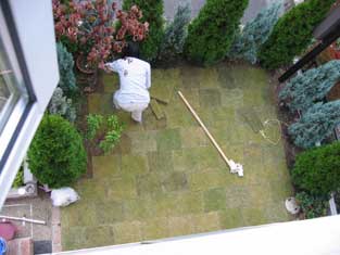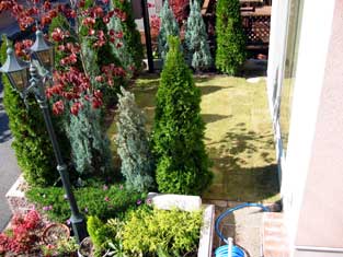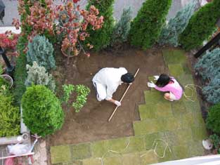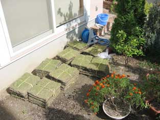 これがいちばん難しかったんですが、ちゃんとできませんでした・・・レベル調整。学校から帰ってきたまあやがブカブカの軍手をはめて、芝敷きを手伝ってくれました。 |