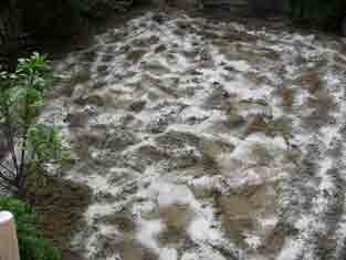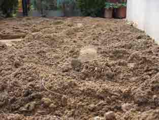 まず、せっせと土を耕します。深さ20−30センチくらい掘るように、とあるのですが、この庭、もともと盛り土をしているせいか、10センチもしないうちに、大きな石ころがゴロゴロ。 |
