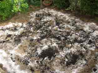 石灰の上は腐葉土をまきます。 |