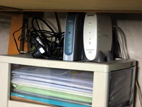などの理由により、ダイニングVAIOも、有線ケーブルを使用することにしました。見た目は悪いですが、書斎からenhanced cat5eのLANケーブルを引っ張りました。