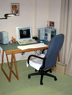 7月13日の夜中に、コソコソと梱包を開け、セットアップをしていると、突然嫁が降りてきて・・・ば、ばれちまいましたぁ! そこで自分専用のパソコンを購入するのは1993年にマックのLC575を買って以来なので、またこれで生涯最後のパソコンとするつもりで、また書斎にあったオーディオ機器は、学生時代に買ったラジカセもどきのミニコンポにσ(^^)が生まれたときから家にあったONKYOのデカスピーカーしかなく、また、これも新婚時代に使っていたオンボロテレビもスペースをとっていたため、これらを一掃して、すべてパソコンでまかなえば、省スペースになるということもあり・・・ とダラダラと嫁さんに説明(言い訳)し、クレジットカードで買ったことも白状しました。