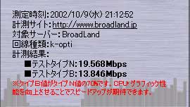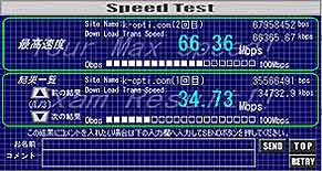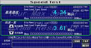 Date: 2002/10/09(Wed) 21:16:37 Download: 30.45Mbps Upload: 4.07Mbps |