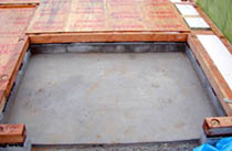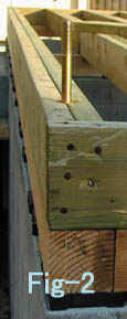 Fig-1 は1階部分の土台です。基礎パッキンの上に4×4の木材を乗せて固定、根太は455mm間隔で並んでいます。この間にポリスチレンフォームの断熱材を敷き詰めます。 Fig-2 はダイニングキッチン部分です。ここでは基礎パッキンの上に4×4の木材が乗り、さらにその上に2×6の木材が303m間隔で並んでいます。さらに Fig-3 はリ