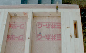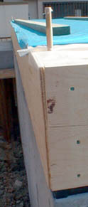 右図はその角(北東角)ですが、このまま起こせばアンカーボルト(?)がすっぽりはまるように作られています。それはいいのですが、単純に考えても1階(と1.5階)の壁は全部で9面あり、まだその1面目を作っているところなのです。今までのペースから判断すると今年中かかって1階の壁がやっとできあがるくらいのものでしょう。上棟は来年3月くらいでしょうか?