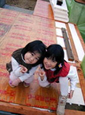 今日は未明から雨がしとしと降っています。久しぶりの雨です。午後からやんできたので家族で現場へ。雨ざらしを想定して行ったのですが見事予想は的中しました。1階部分の断熱材はすでに充填されその上に“三井ホーム、防腐・防蟻合板”と書かれたベニヤ合板が張られていました。しばらくして合板の上で子供たちの運動会が始まりました。ちょうどこのときに営業のI氏が登場!まったくの偶然です。何かこの近くの現場に用事があってついでに寄ったのだとのこと。雨で合板や断熱材が濡れているけど大丈夫かと問うとまったく問題ありませんとのことです。でもやっぱり気分的には防水していただけるとうれしいですね。
