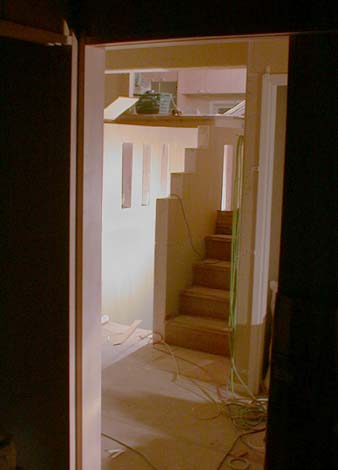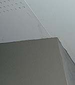 しかし・・・予定よりは明らかに遅れています。今日からクロス工事も始まる予定だったのですが、まだのようです。左官屋さんのモルタル塗りも今日で終わるはずなのですが、まだまだあと1日はかかりそうです。左の写真はセメントボードの目地をモルタルで埋めているところですが、モルタルを塗る前に10cm幅くらいのグラスファイバーのメッシュを充ててその上からモルタルを塗っていました。