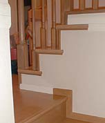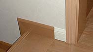 Page 16にも書きましたが、我が家ではスキップフロアを採用し、至る所に階段があります。その階段ユニットの色はナチュラル系ですが、建具・ケーシング・廻縁はホワイトを選びました。これらが複雑に入り組んでおり、下写真のように、不自然なつながりの部分が出てしまいました。今後、DIYの対象になる事案ですが、はて、どちらの色に合わせるべきか?