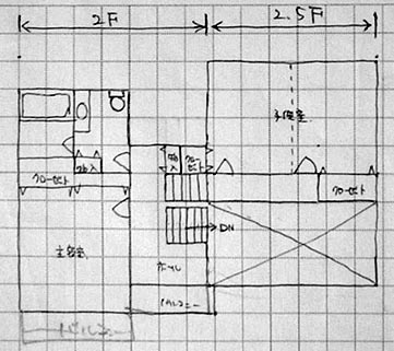 世の中にはたくさんの間取りソフトが出回っていますがスキップフロアに対応している間取りソフトはおそらく皆無でしょう。もし存在するならどなたか紹介してください。というわけで間取りの検討はもっぱら手書きでの地道な作業となりました。