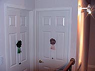 入り口です。先日幼稚園祭で古物バザーで2点で300円にてゲットした人形を掛けてみました。ちょっとかわいかないですか!